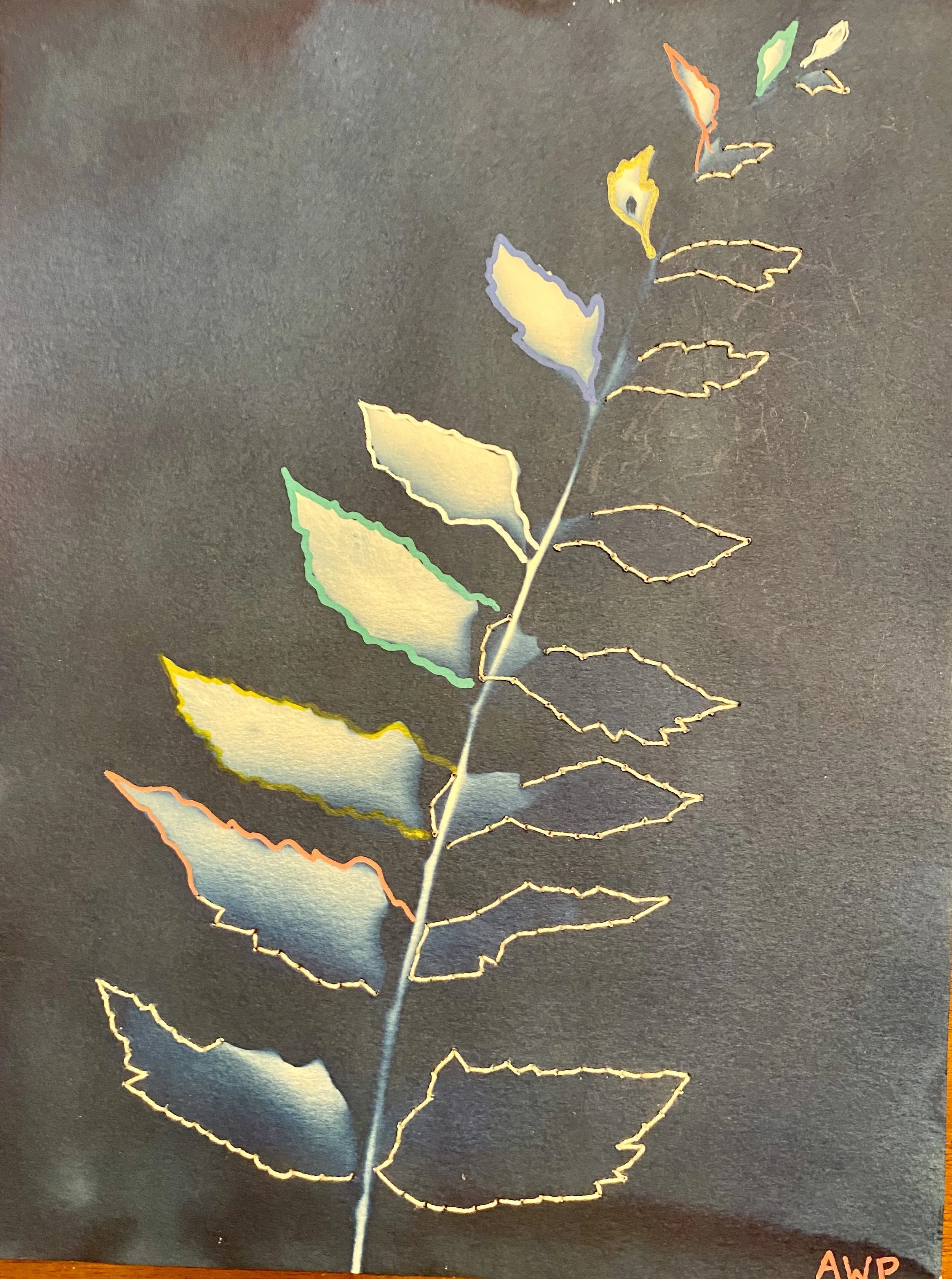 Cyanotype, Spray Paint, and Embroidery on Paper